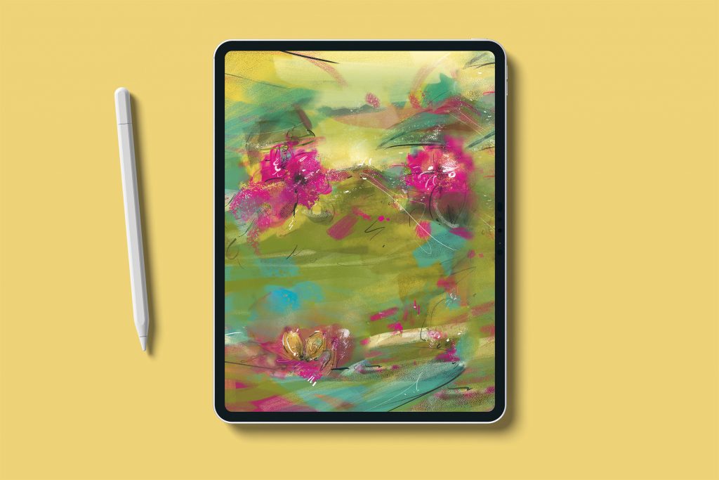 Für die Gestaltung des Motivs habe ich mich für eine lebendige Formensprache und eine digitale Umsetzung der Illustration auf dem Tablet entschieden. So konnte ich die einzelnen Pinsel frei wählen und ganz nach meiner Intuition gestalten.